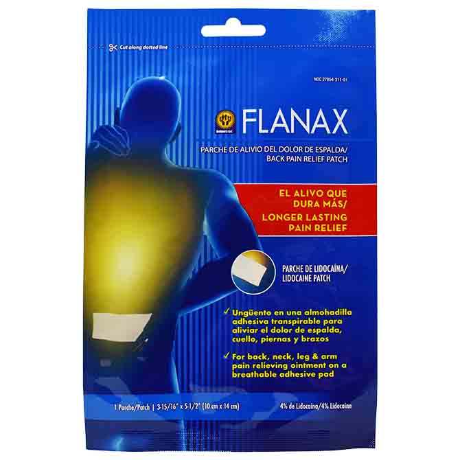 PARCHE CON LIDOCAINA PARA EL DOLOR DE ESPALDA, FLANAX