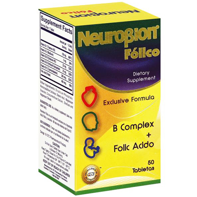 TABLETAS SUPLEMENTO DIETETICO CON ACIDO FOLICO Y B-COMPLEX 50’S, NEUROBION